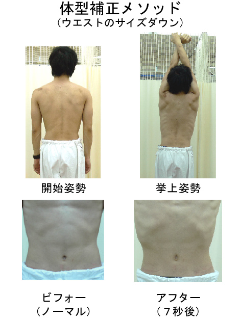 (筋肉の持続的な収縮)を行った結果、姿勢が矯正され、身体(特におなか周り)の引き締め状態が変化したものなのです。